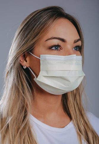 Máscara cirúrgica tripla c/ elástico cx. c/ 50 und. AMARELA